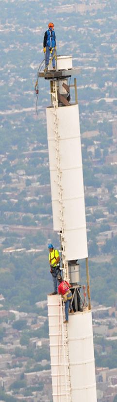 The amazing shots were taken by tiny cameras on the ironworker’s helmets, the antenna sections themselves, and another helicopter. The video features Local 1 ironworkers John Rukavina and his nephew Bob East.
