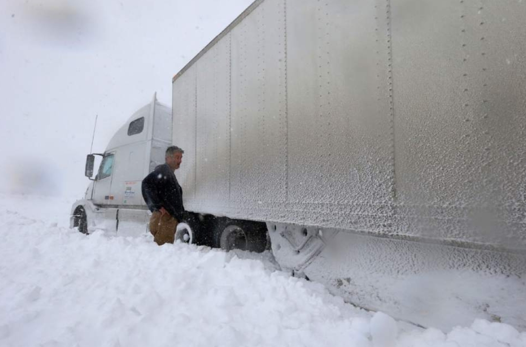 Buffalo snowstorm November 2014. Semi trailer stuck.