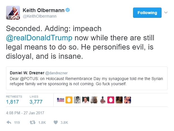I have noticed that some very large news websites outside are the primary sites that are reporting these concerns from the psychiatric community. None of the big US news sites have yet to come forth. Why? Well, Trump just fired the acting attorney general, Sally Yates, on Monday when she came forth and declared she would not back Trump and his ban. Don’t think for one moment that Trump will not fire anyone else that opposed him if he has the ability to fire that person. If not, he’ll find a way to make sure it is done by someone else. I’m sure the reporters don’t want to fall into the category. Nor the owners of the newspapers. Even though they are well within their rights to do so, they just want the easy road, I suppose.