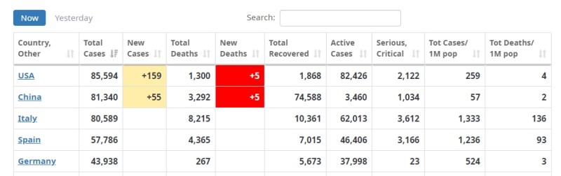 I have been watching the stats very closely. Just waiting for any signs of the curve flattening out – if even very small. It was inevitable that we would pass Italy, the country hardest hit outside of China, simply due to the population. But we passed China now. I’m really not sure how to feel about this. Of course, it’s sad, painful – but I mean statistically, logically… Passing the number of cases in the country in which it originated – and China is even more populated than the US so it’s not a difference in population. Primarily, China shut down the country fast, and really shut it down. Here we have a buffoon who likes to think he’s in charge, but for the first month, he kept saying it was a hoax by the Democrats. Well, now he knows it was not. And he wants to put people back to work? Sure, I’d love for the country to get back up and running. Thankfully, I’m salaried and still being paid the same – although one of my contract jobs I work for extra cash has put all contractors on hold until this is all over.