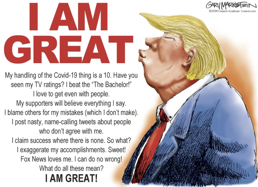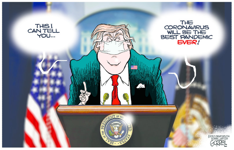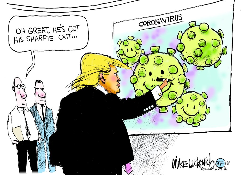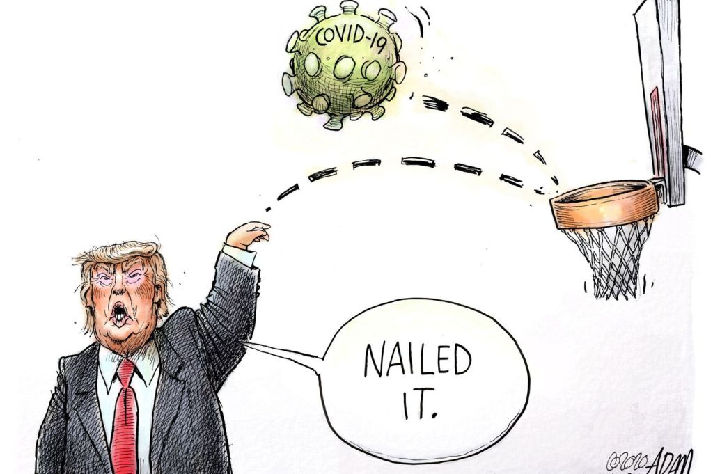 Now, here are some political cartoons about trump and his “relationship” with Coronavirus, aka COVID19. Sadly, many are more true than funny. If you click on any image, it will enlarge and you can scroll through each one at your own pace.