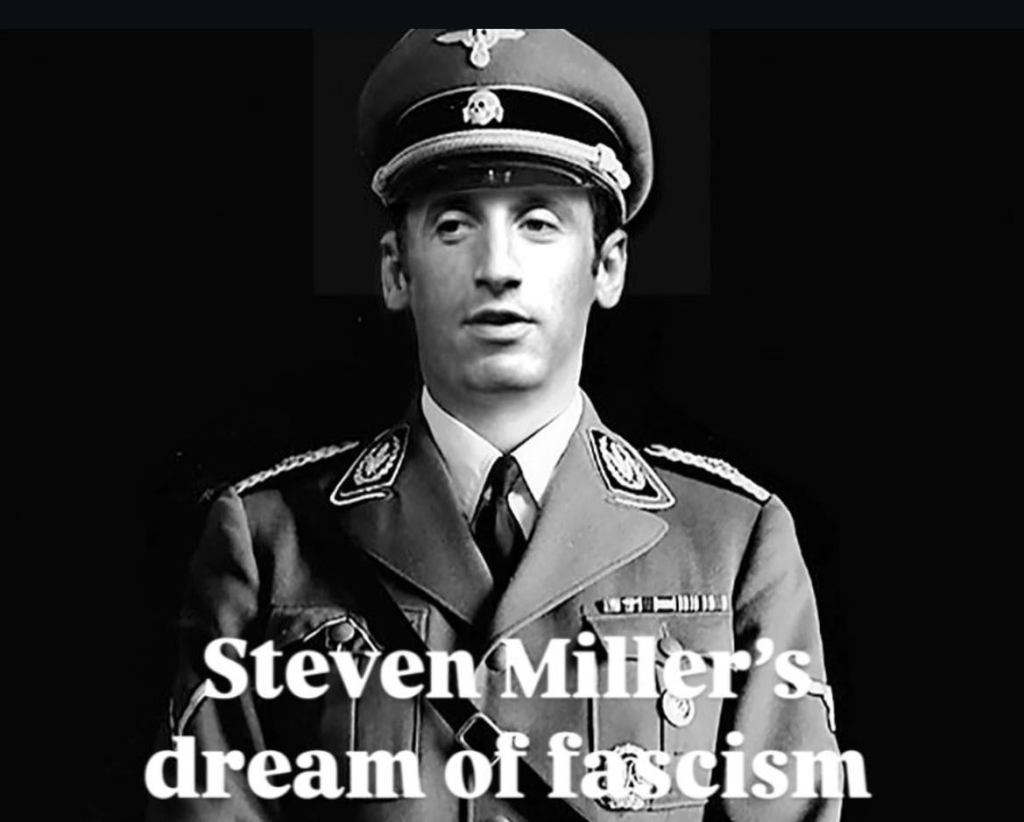 Very importantly, THIS IS THE MAN BEHIND THE CURTAIN WHO IS CONSTANTLY WHISPERING LIES INTO TRUMP’S EAR. STEPHEN MILLER IS EVIL. STEPHEN MILLER IS VILE. AND HE WANTS TO TAKE CONTROL OF EVERYTHING AND LITERALLY – VERY LITERALLY – WIPE OUT ALL DEMOCRATS.