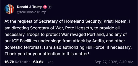 Not a single thing trump said is factual. None of it. Just about everything trump says these days are flat-out lies. But trump must get the military into enough cities in order to declare martial law. MARTIAL LAW IS THE ONLY WAY TRUMP CAN STOP THE 2026 MIDTERM ELECTION.